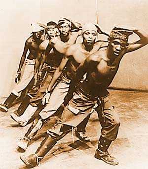 The racial separation of apartheid government meant that miners were separated from their families for long periods of time. The men would be taken chained into the mines and shackled at their cramped work stations in almost total darkness. They were forbidden to move around and punishment was enforced with physical abuse. Conditions were very poor; floors were often flooded with poor or non-existent drainage, which meant that they often suffered from skin ulcers, foot problems and consequently lost work time. The white bosses, rather than spend the money needed to properly drain the shafts, issued the workers with gumboots. Thus, the miner’s uniform was born; heavy black gumboots, jeans or overalls, bare chests (as temperatures would reach up to 40°C) and bandannas to absorb the eye-stinging sweat. To the miners, gumboot dancing was not only a method to communicate and entertain, but a method to survive.